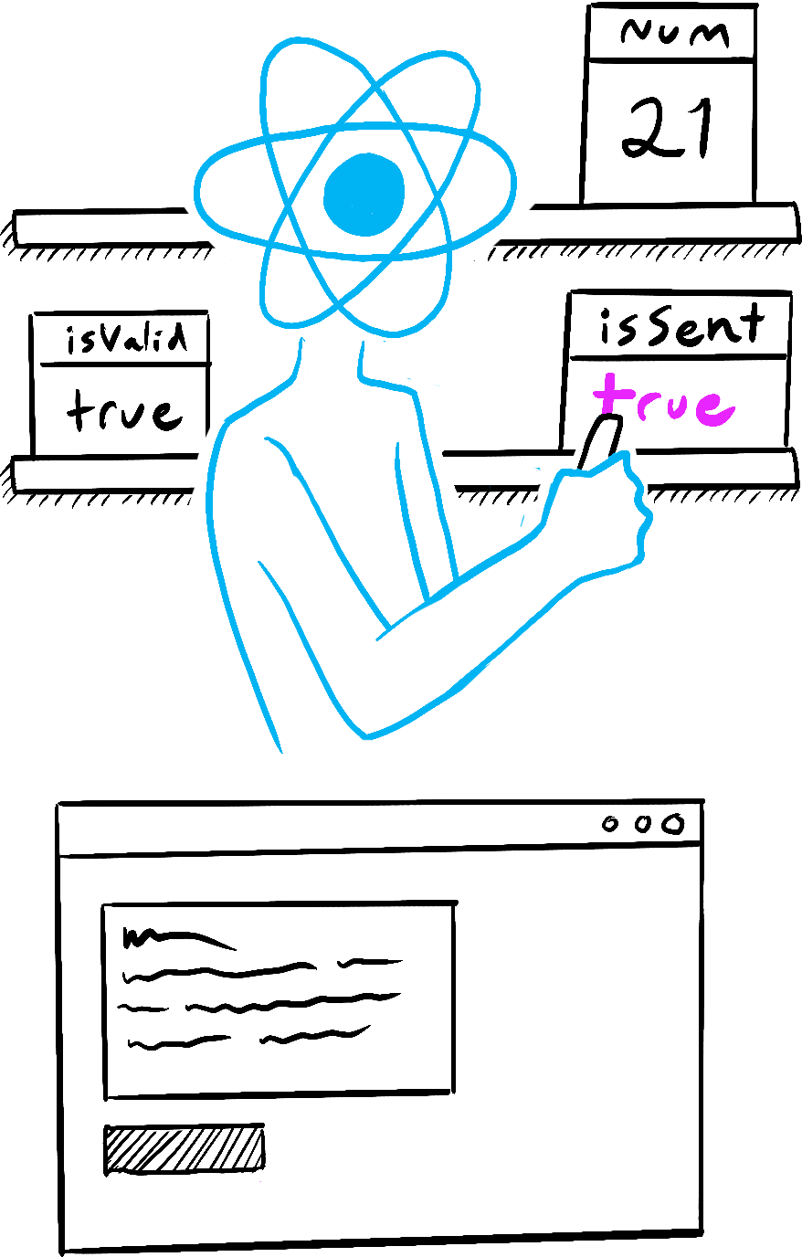 import { useState } from 'react'; export default function Form() { const [isSent, setIsSent] = useState(false); const [message, setMessage] = useState('Salut !'); if (isSent) { return <h1>Votre message est en route !</h1> } return ( <form onSubmit={(e) => { e.preventDefault(); setIsSent(true); sendMessage(message); }}> <textarea placeholder="Message" value={message} onChange={e => setMessage(e.target.value)} /> <button type="submit">Envoyer</button> </form> ); } function sendMessage(message) { // ... }